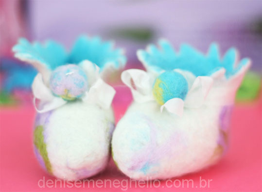 | "SAPATINHO BABY" Técnica deliciosa, super fofos estes sapatinhos feitos com a técnica da feltragem utilizando lã merino extra fina! |